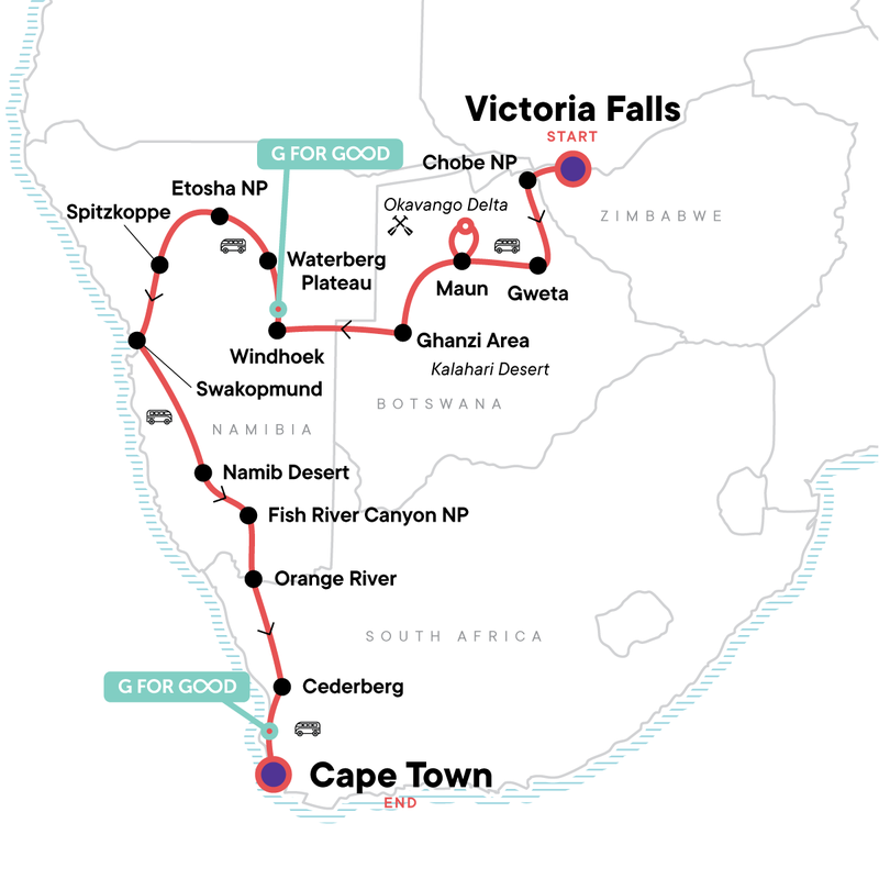 2. Cape Town, Namibia, Botswana & Vic Falls (21 Days)